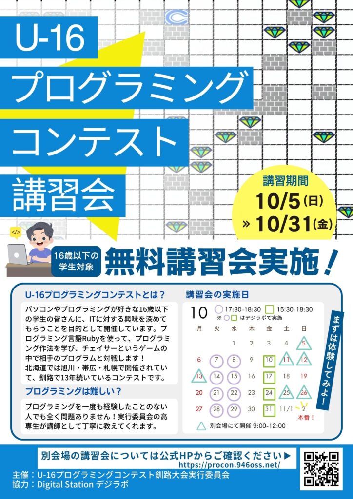 U-16プログラミングコンテストの講習会に参加して、プログラミングの楽しさを体験してみませんか?