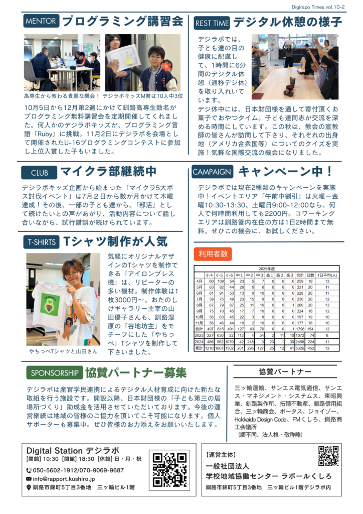 デジラポは協賛企業様からのご支援により、子ども達は利用することができています。